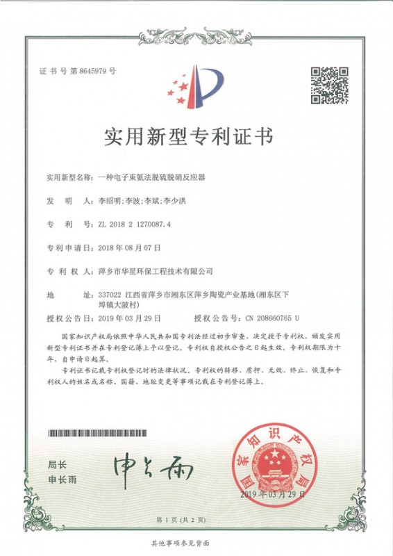 - 一種電子束氨法脫硫脫硝反應(yīng)器-實(shí)用